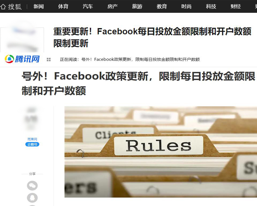 Facebook新政策相关截图 | Source:搜狐网、腾讯网